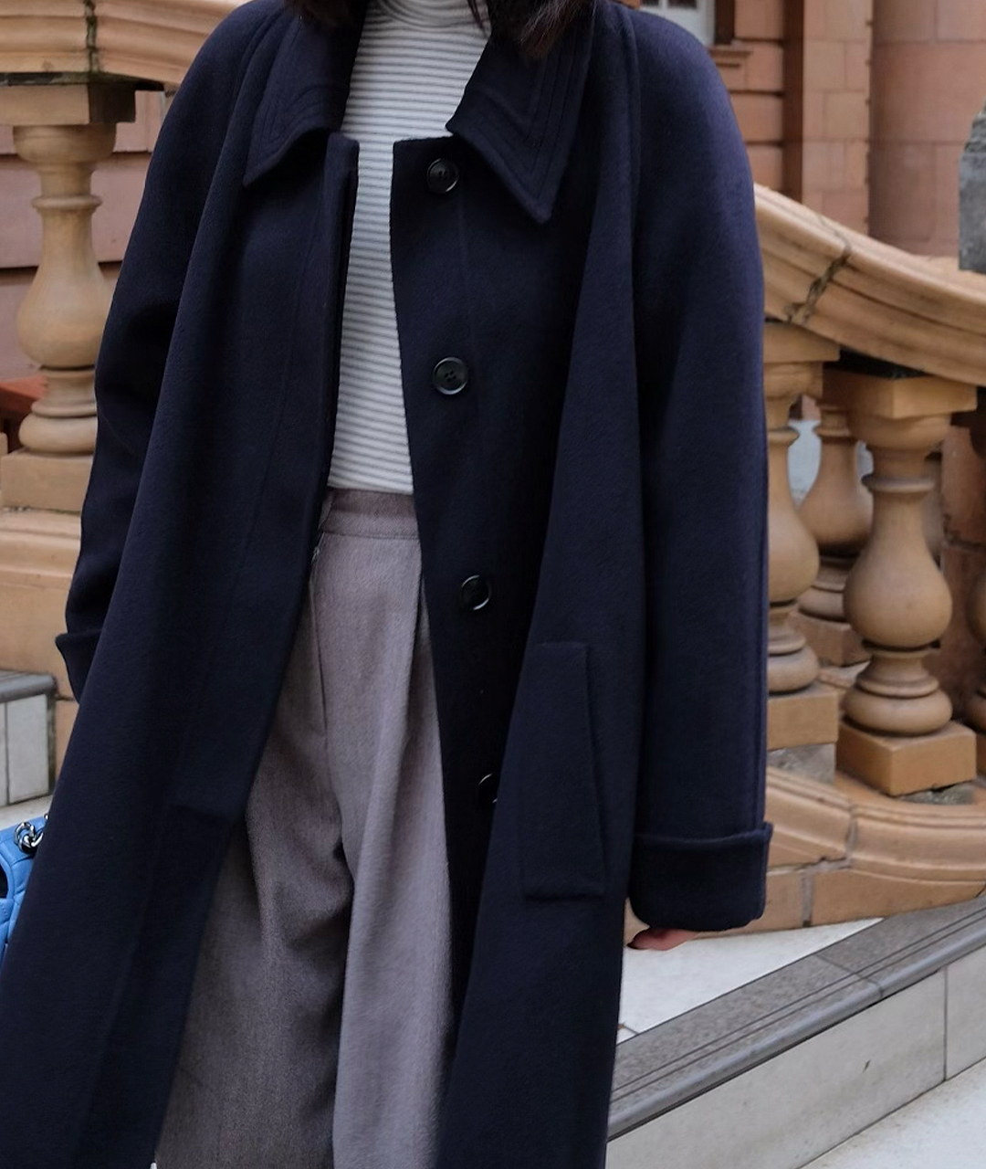핸드메이드 네이비 클래식 래글런 코트
