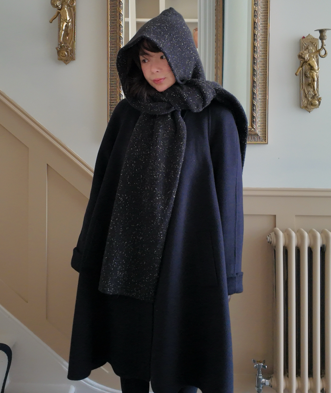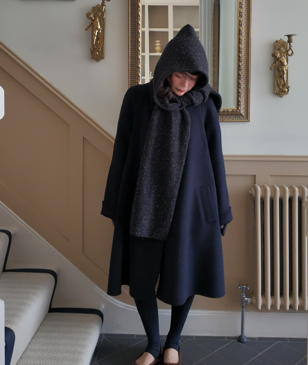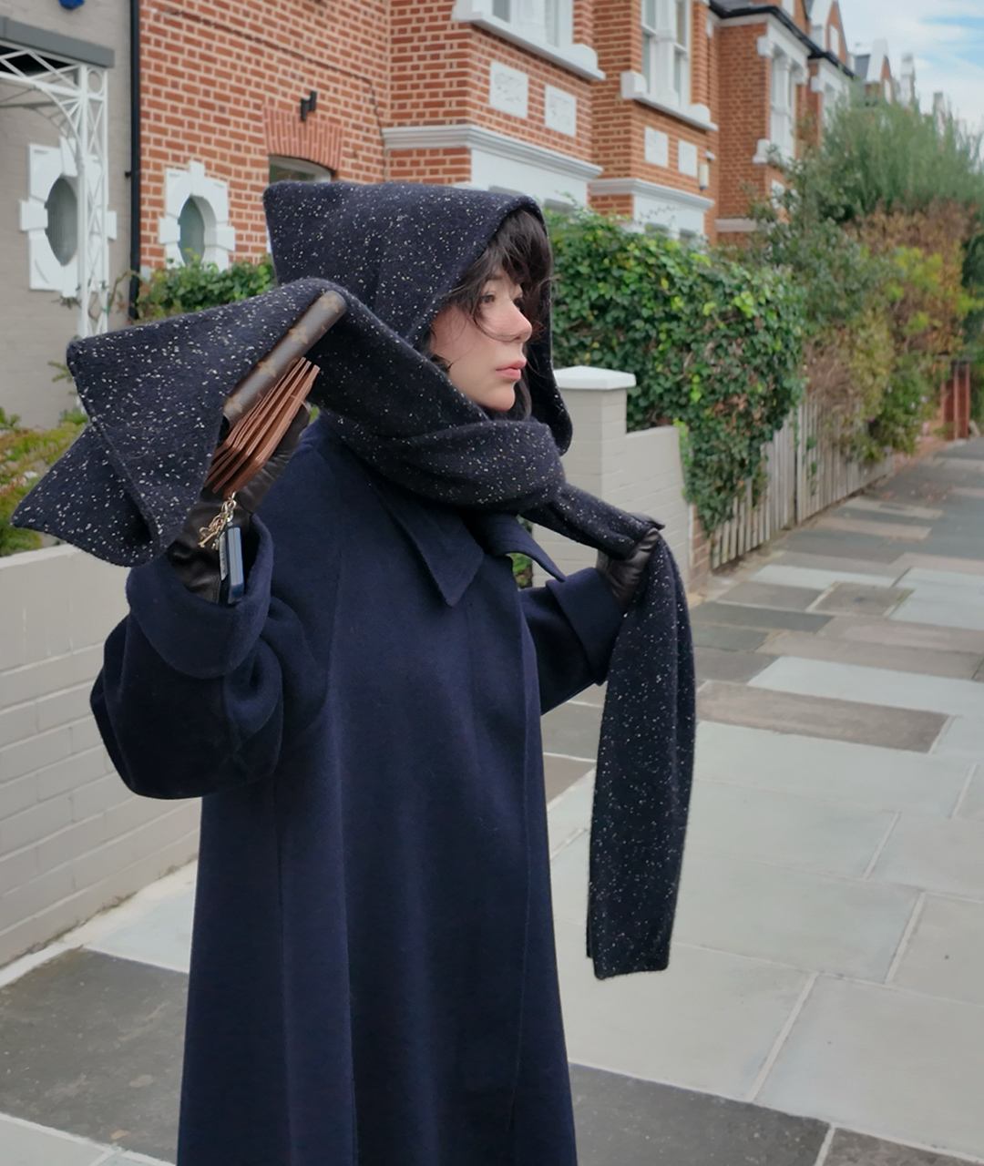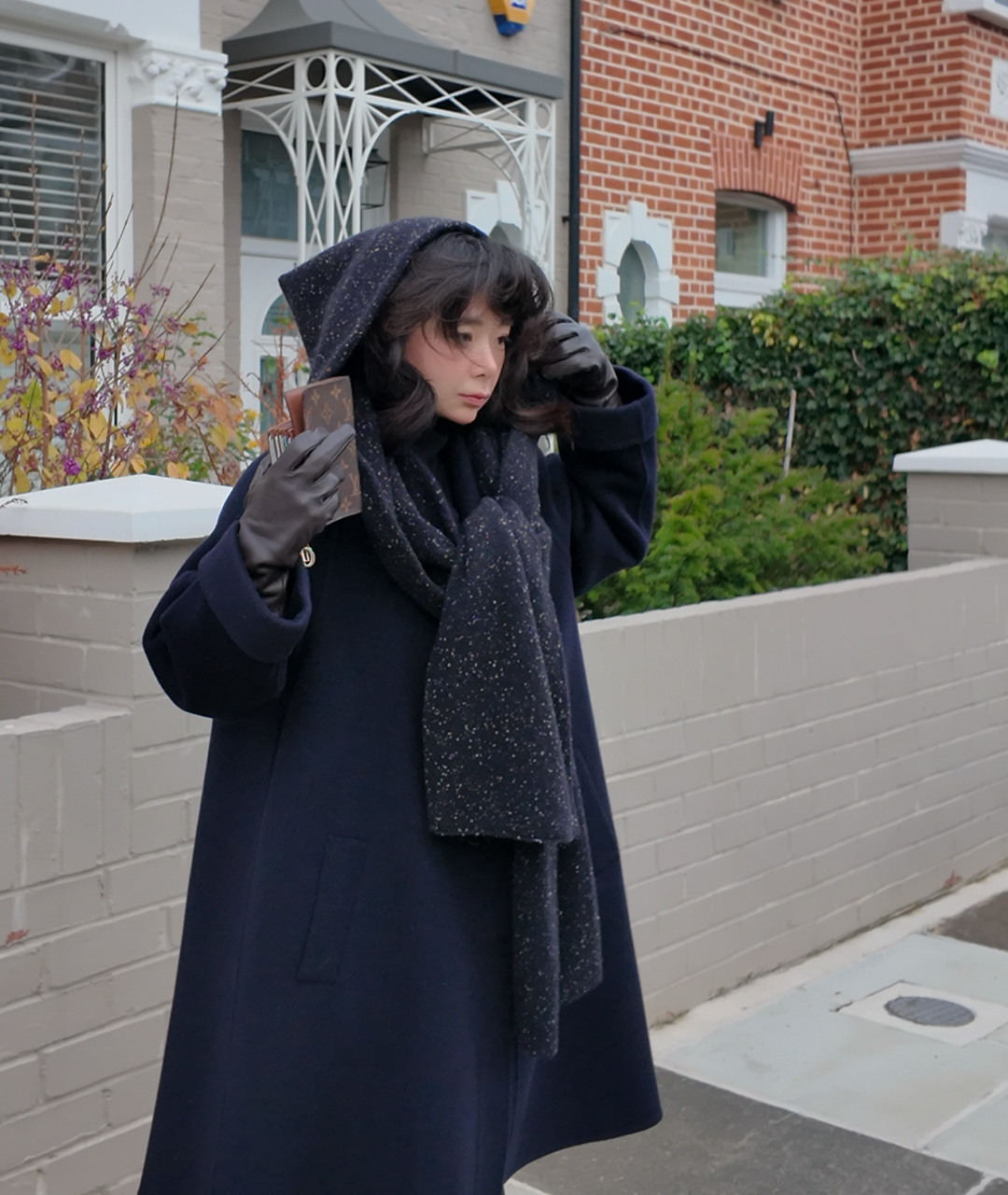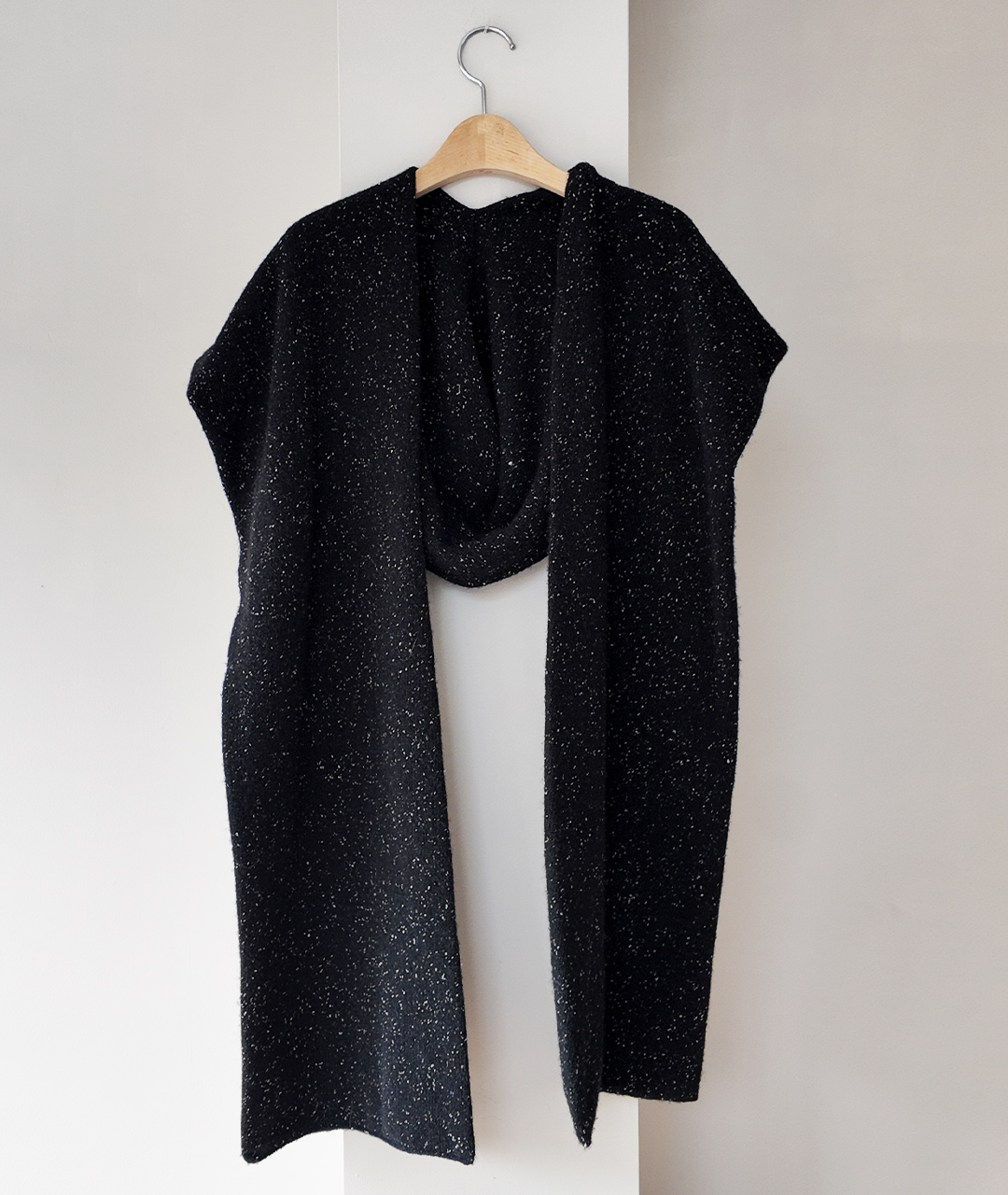 후드처럼 머리에 쓰거나 목도리처럼 두를 수 있는 충분한 기장으로 제작되었습니다.