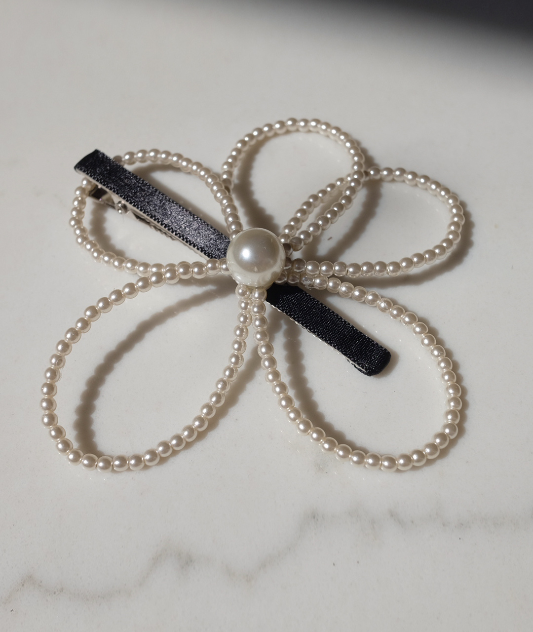작은 진주 알갱이로 데이지 모양을 만든 사랑스러운 헤어핀입니다.