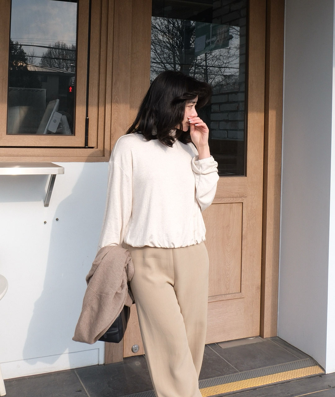 소매 끝단과 밑단에는 얇은 고무 밴딩과 셔링 디테일을 더해 실루엣을 부드럽게 잡아주며, 단조롭지 않은 포인트를 더해.