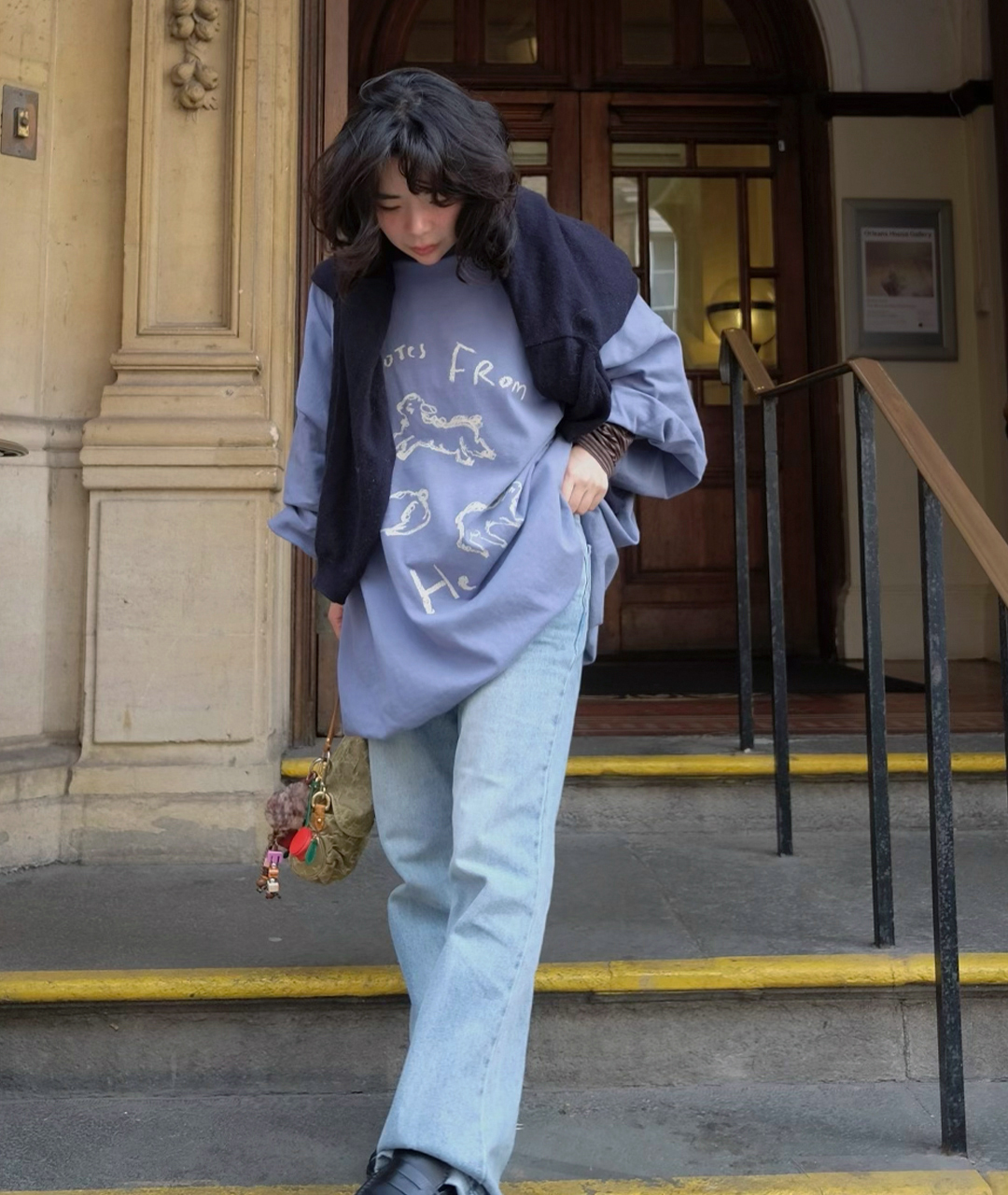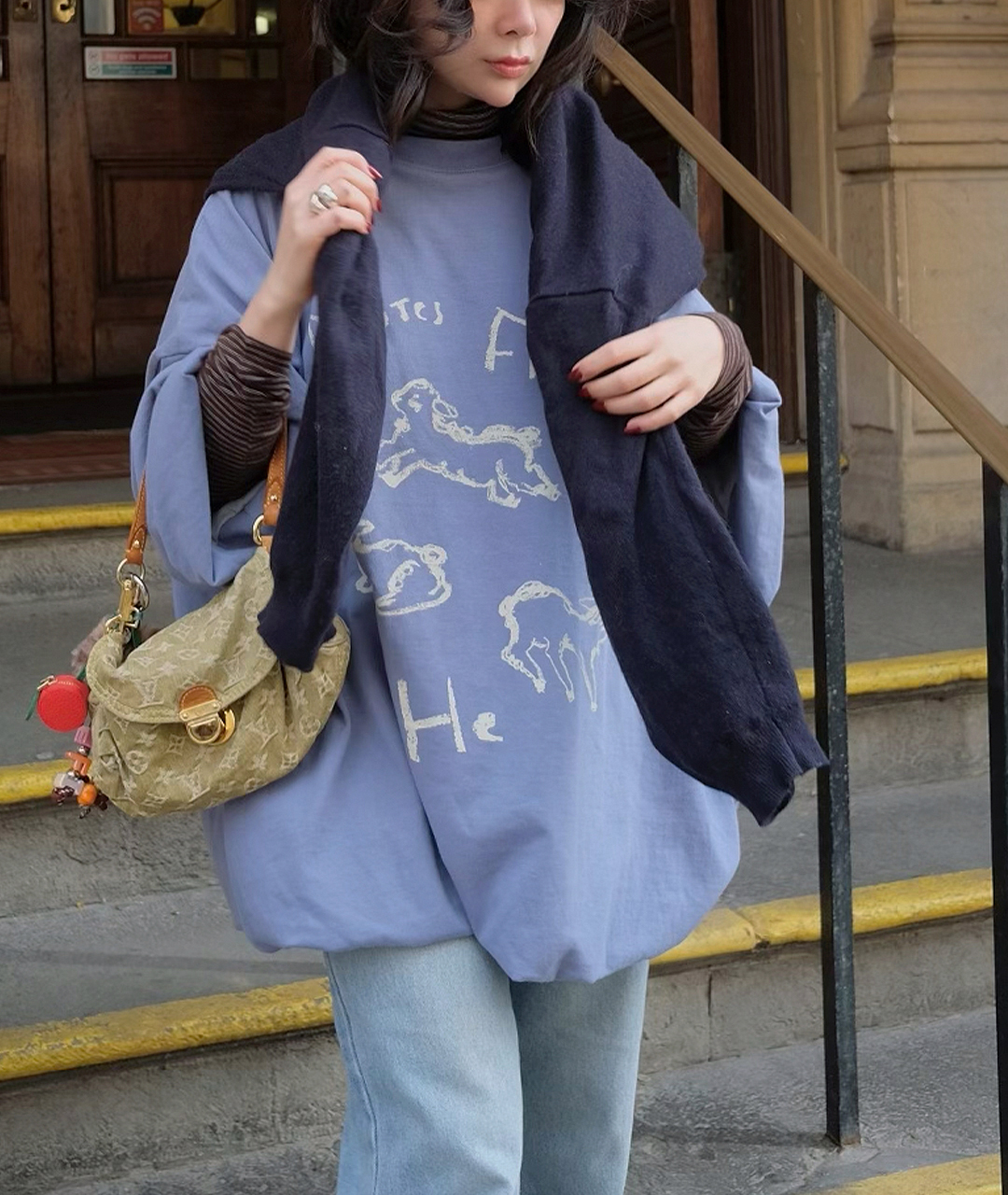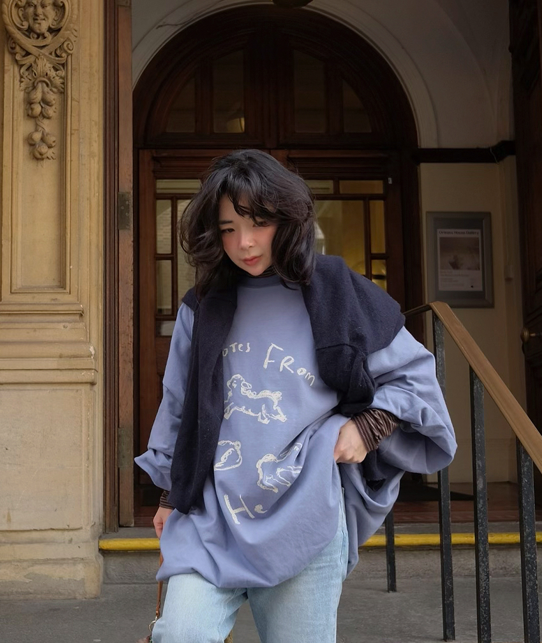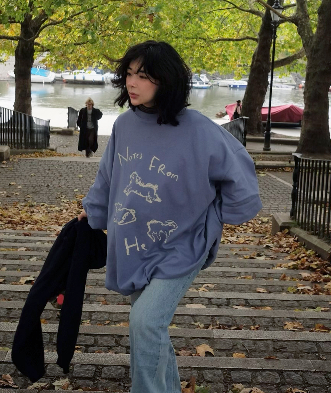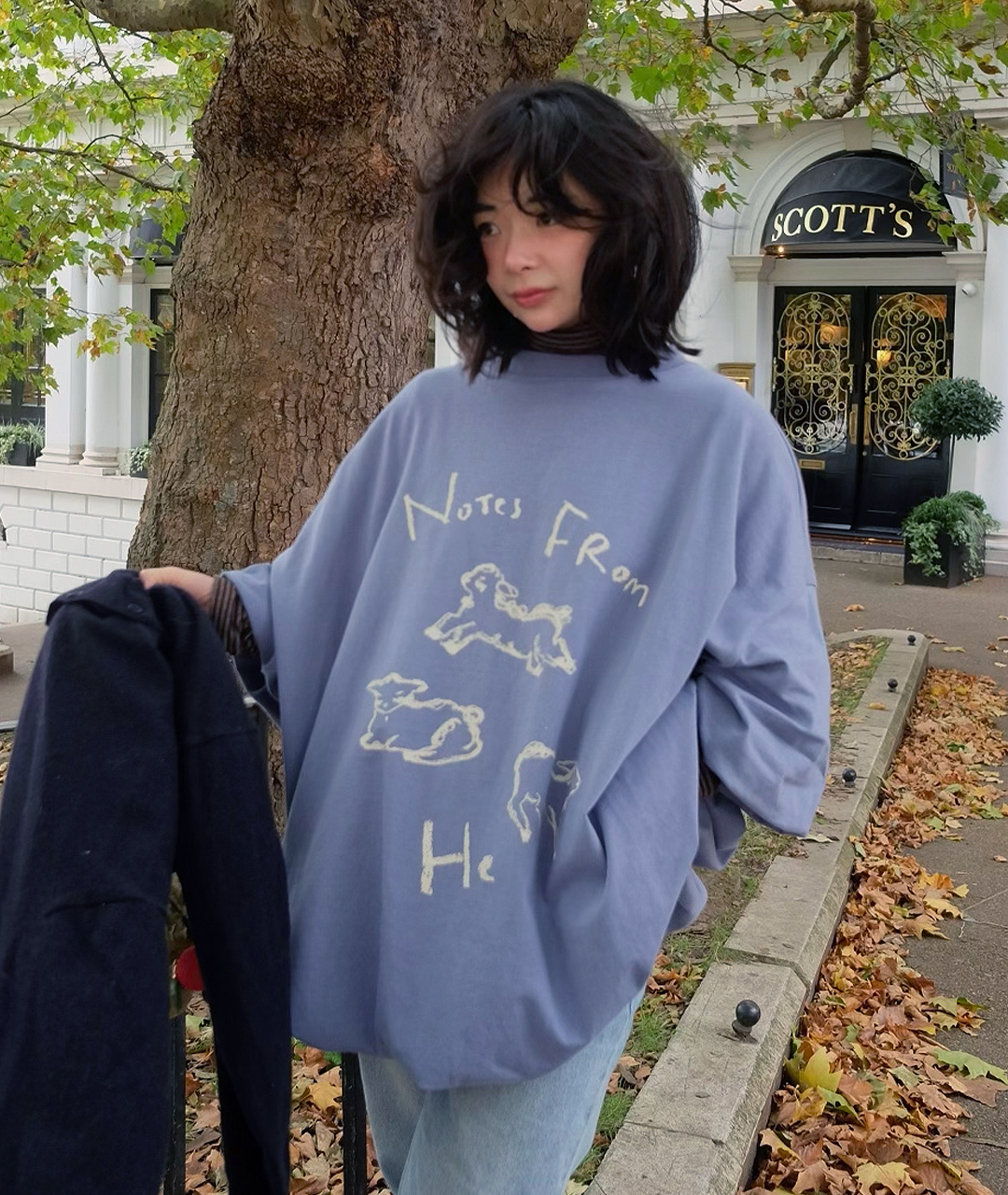 Notes from He의 시그니처 양 프린트는 빈티지한 크림 색감으로 더해져, 워싱된 느낌의 스트릿한 무드로 연출했습니다.