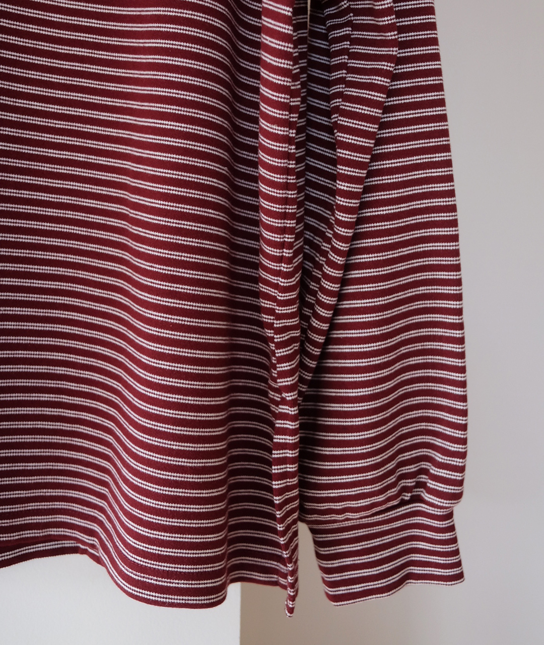 겨울의 정석 컬러인 버건디 톤으로, 편안하게 착용할 수 있는 와이드 넥 폴로 티셔츠입니다.