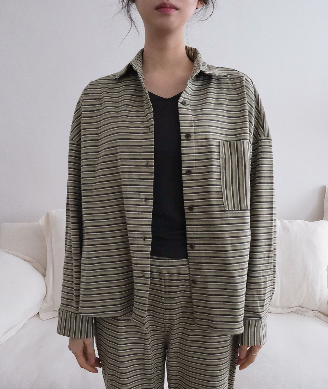 말차 오가닉 스트라이프 셔츠
