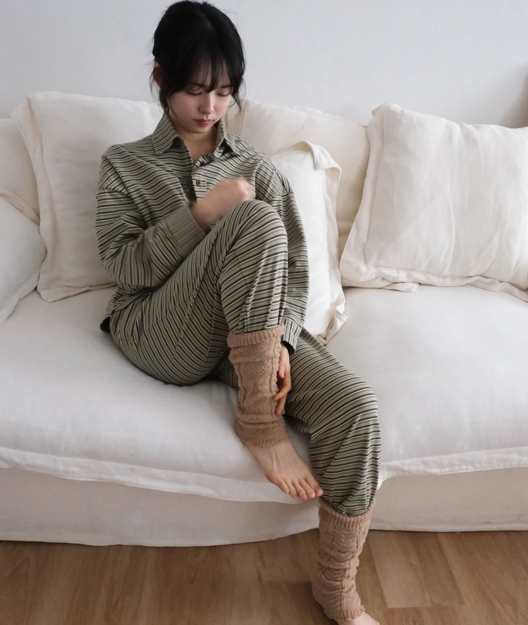 세트로 매칭할 수 있는 '버터 오가닉 조거팬츠' 와 함께 매칭하면 집에서도 편안하면서도 기분 좋은 스타일링을 완성할 수 있습니다.