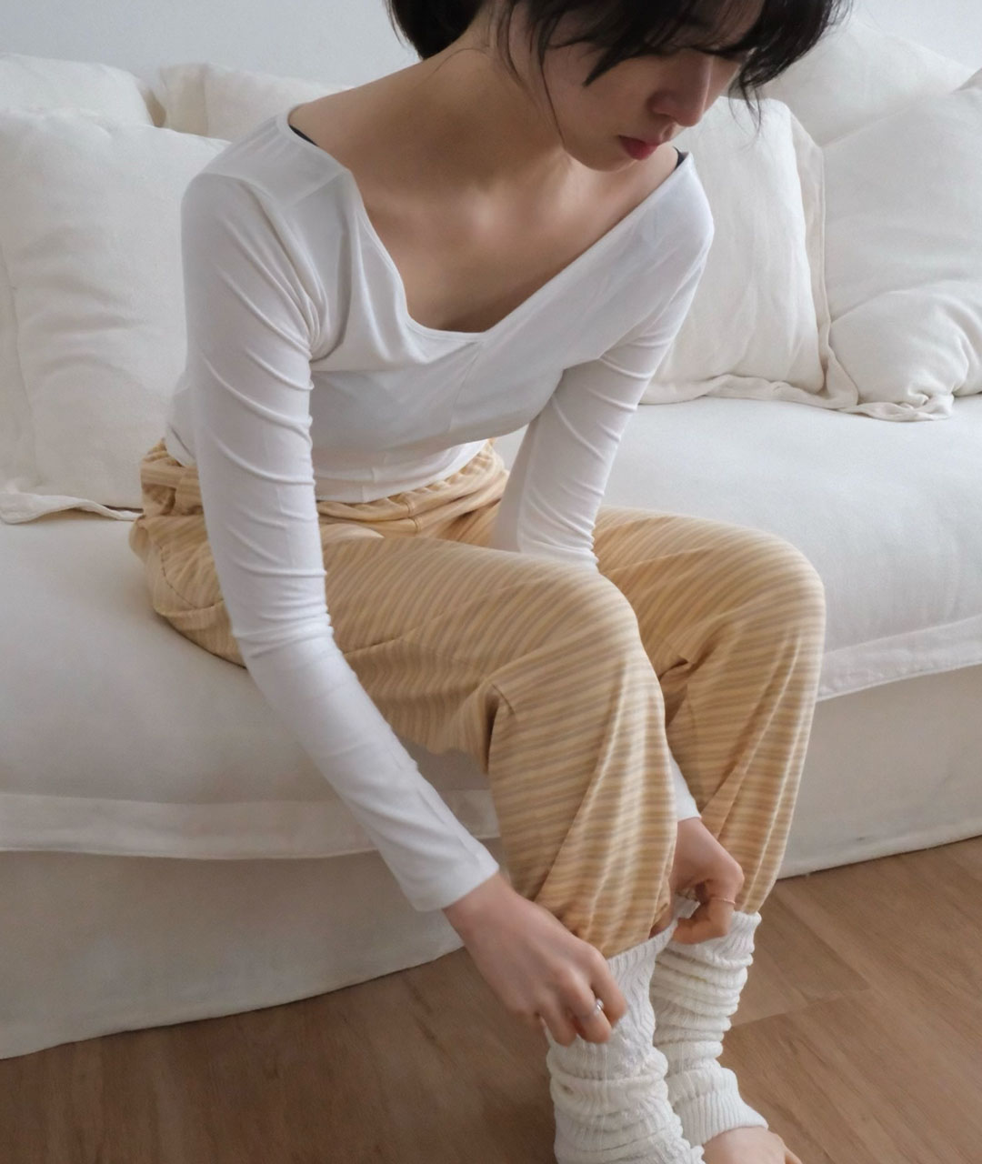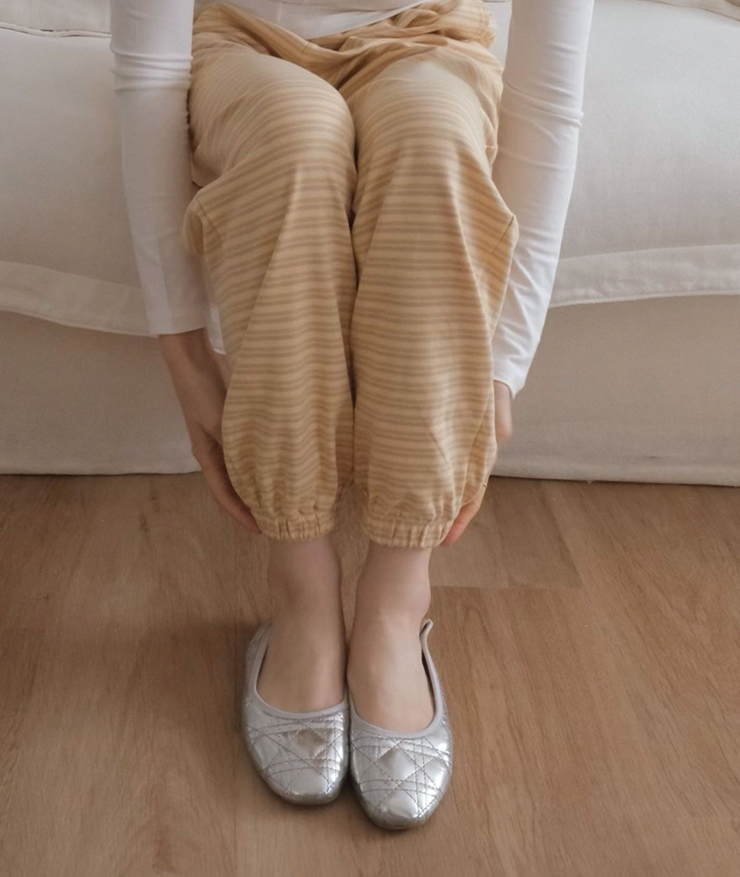 라운지웨어로는 물론, 레이어드 코디에도 활용하기 좋은 부드러운 스트라이프 조거팬츠입니다.