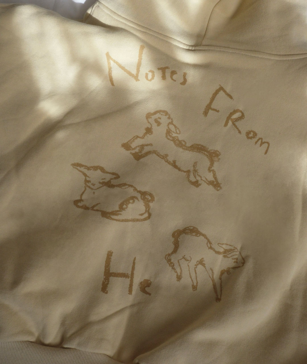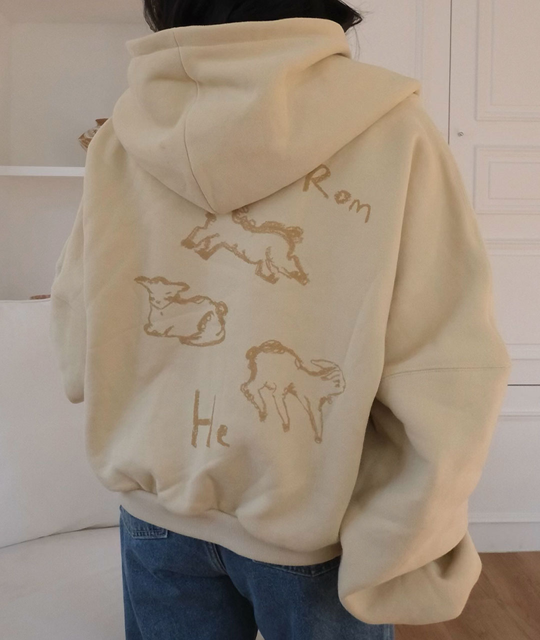 후드 뒤에는 Notes from He의 양 시리즈 프린팅이 더해져, 몽글한 색감과 질감이 따뜻한 포인트를 완성합니다.