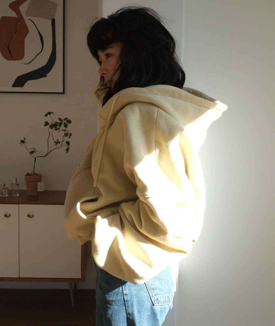 100% 유기농 원단으로 제작된 오버사이즈 집업 후디입니다.