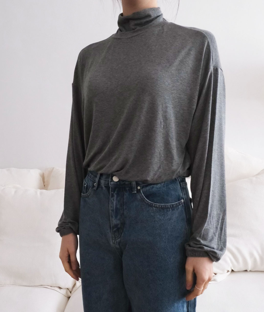 폴라티에서 어깨선까지 자연스럽게 떨어지는 라인이 여성스러운 분위기로 착용하실 수 있습니다.