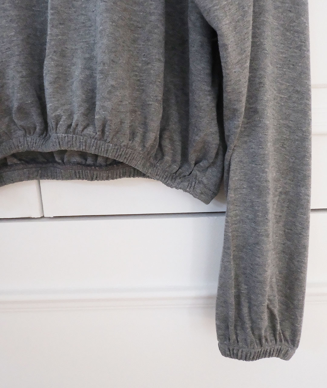 소매 끝단과 밑단에는 얇은 고무 밴딩과 셔링 디테일을 더해 실루엣을 부드럽게 잡아주며, 단조롭지 않은 포인트를 더해.