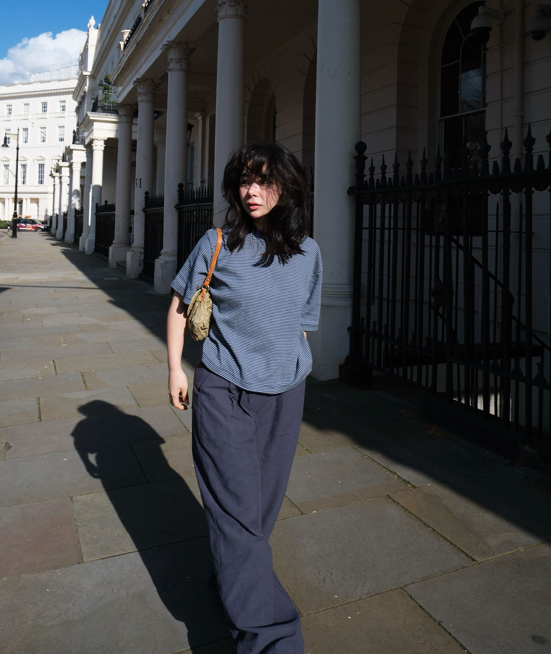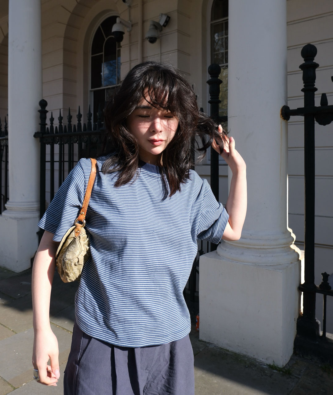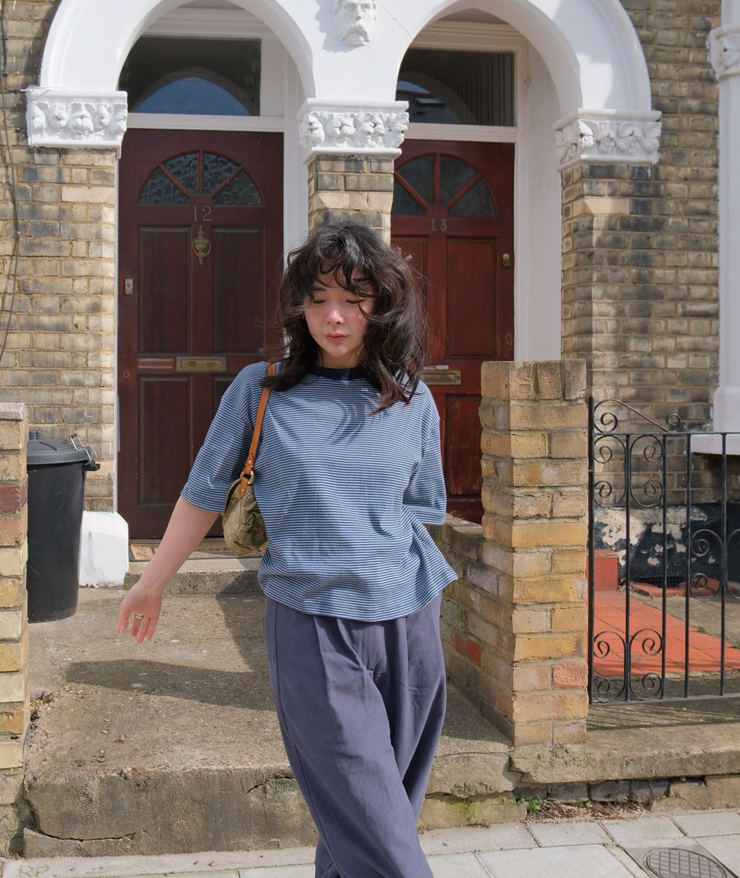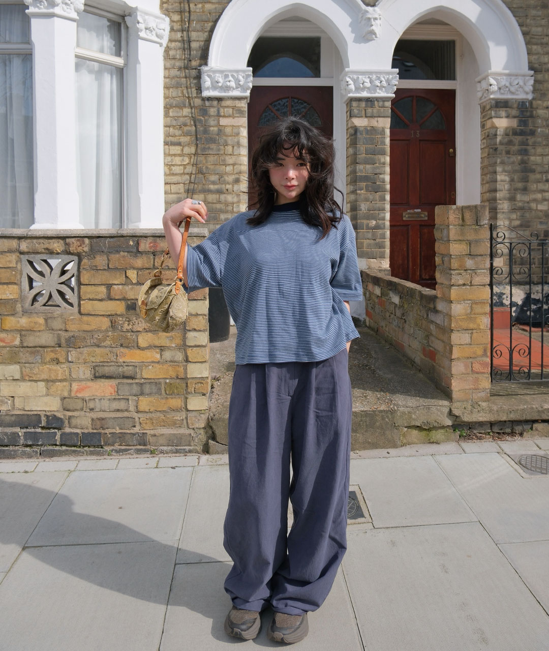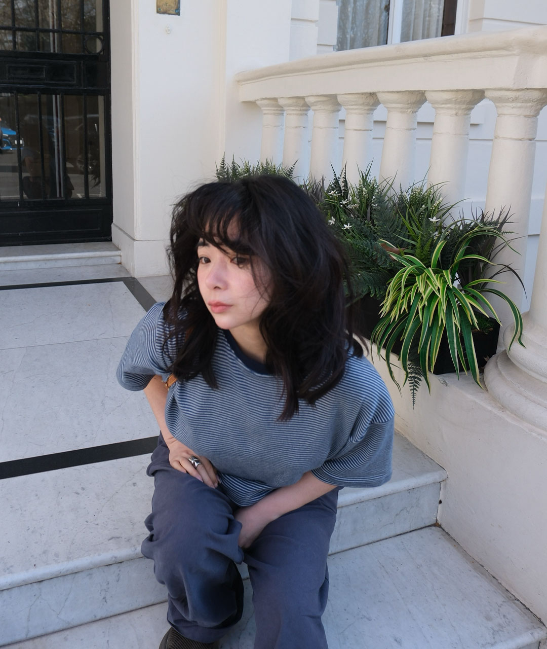 빈티지한 미드나잇 블루가 섞인 톤다운된 블루 컬러를 바탕으로, 아이보리 잔스트라이프를 적용해 He만의 컬러 톤을 완성했습니다.