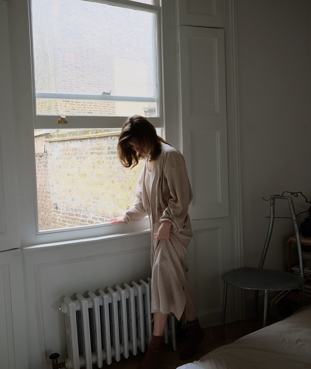 브런치 카페로 친구를 만나러 편안하게 입고 가는 모습을 상상하며 만든 원피스입니다.