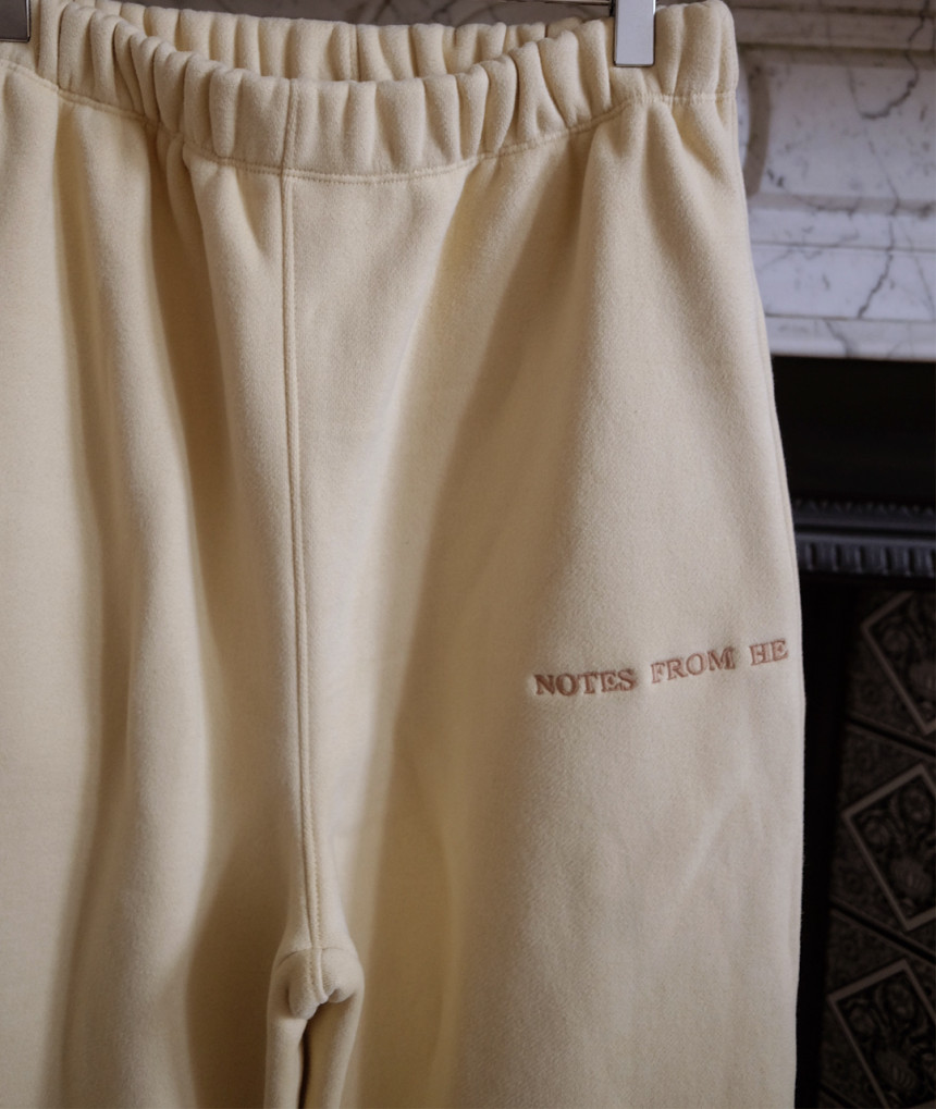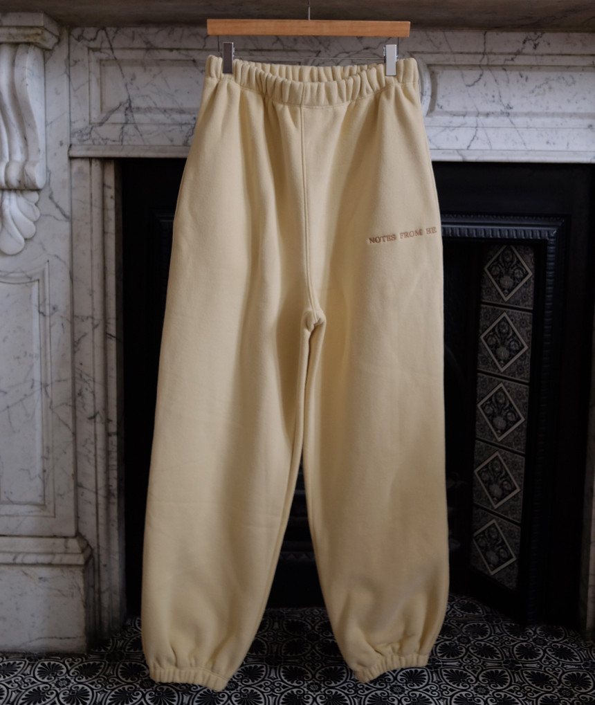 A unisex sweatpants in a soft butter pastel tone, made from 100% organic cotton.