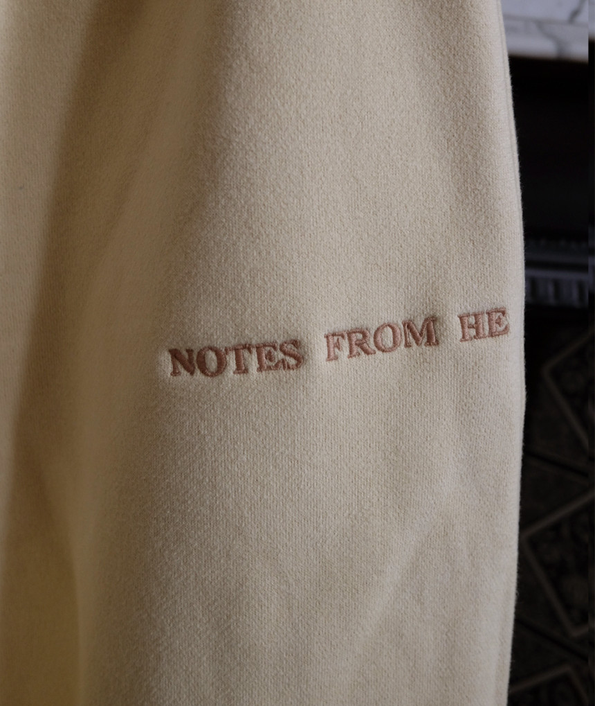 notes from he의 자수 펀칭 작업으로 저희 시그니처 피스를 자랑합니다.