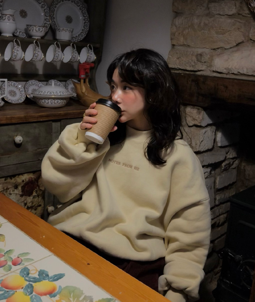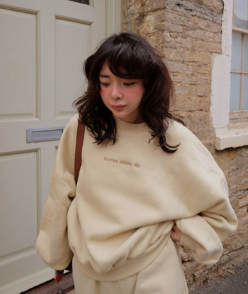 편안한 파스텔톤의 버터 색감이 녹여진 오버핏 의 남여공용 맨투맨으로 착용할 수있습니다.