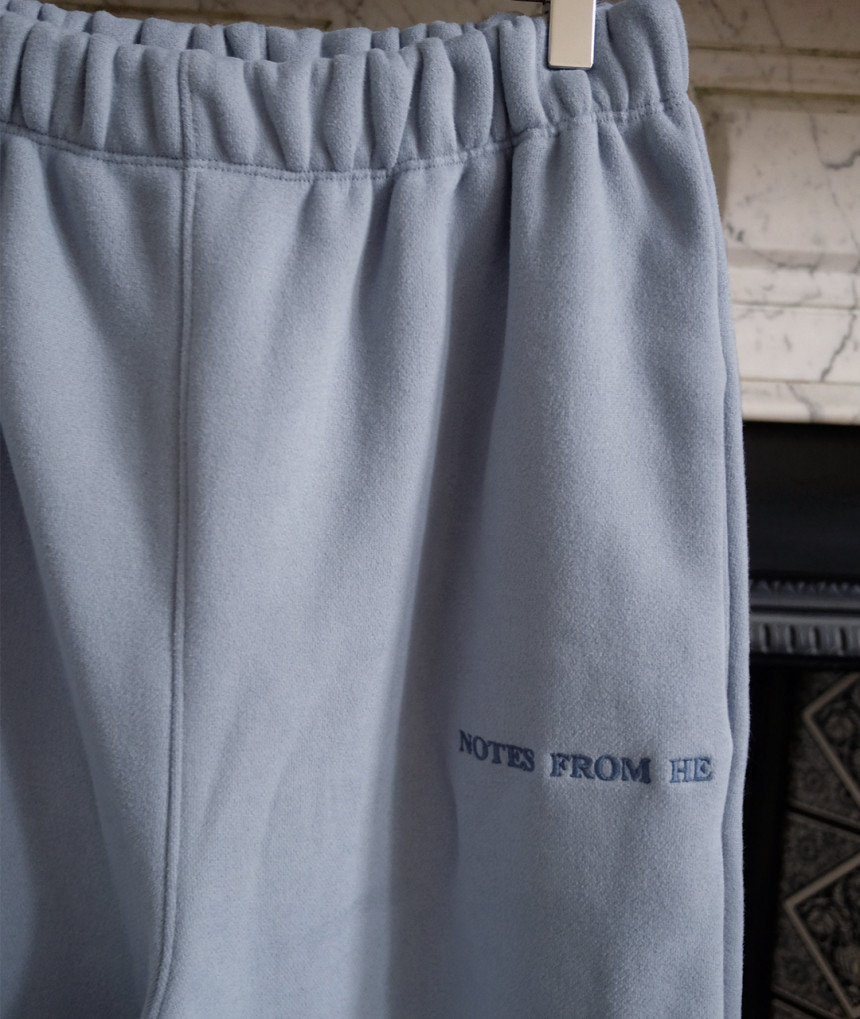A unisex sweatpants in soft baby blue, made from 100% organic cotton with a brushed, fleece.