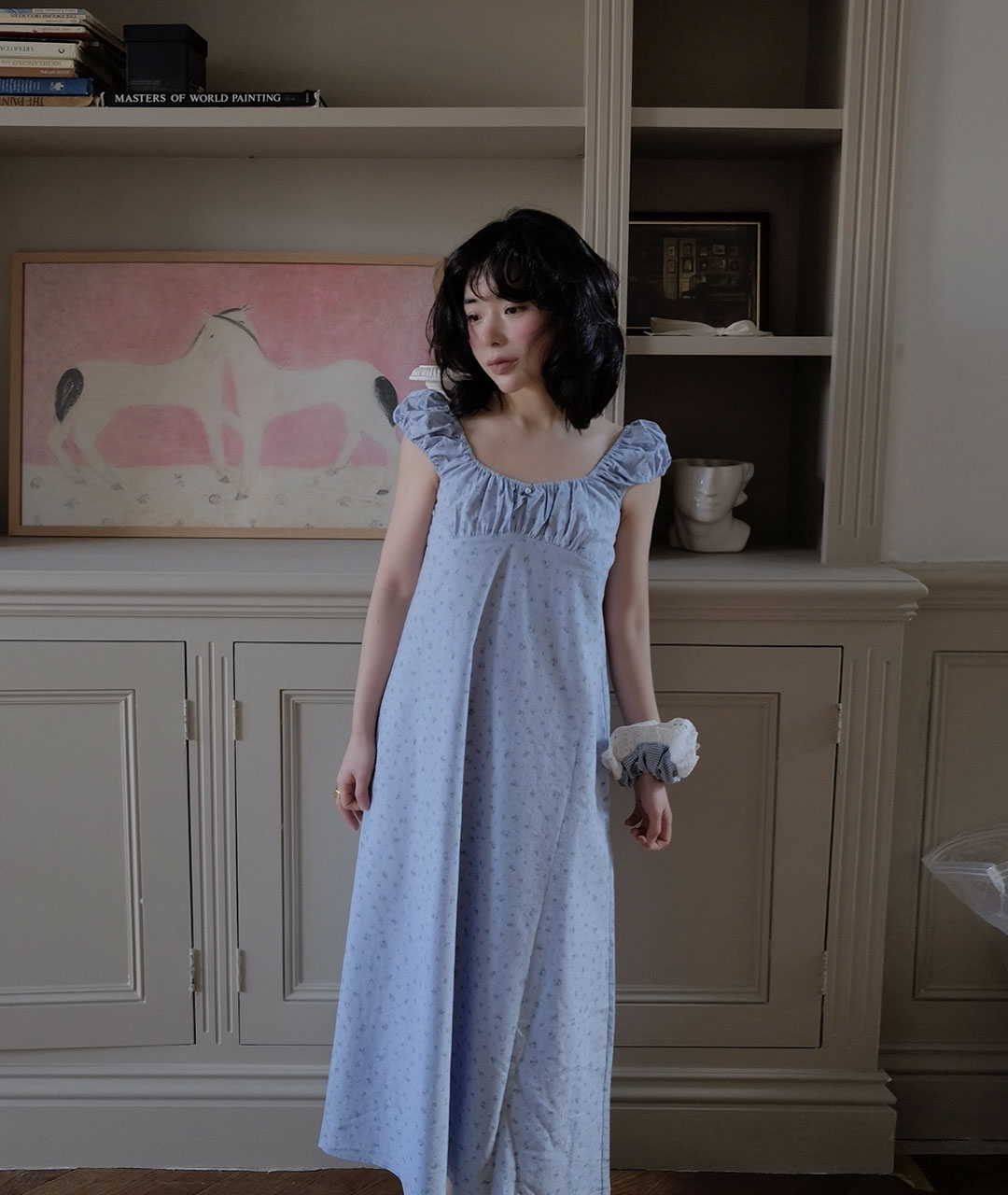 블루 플라워 롱 원피스 / Blue Floral Long Dress