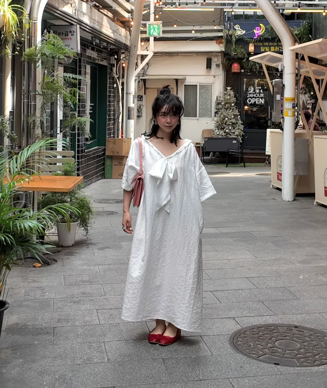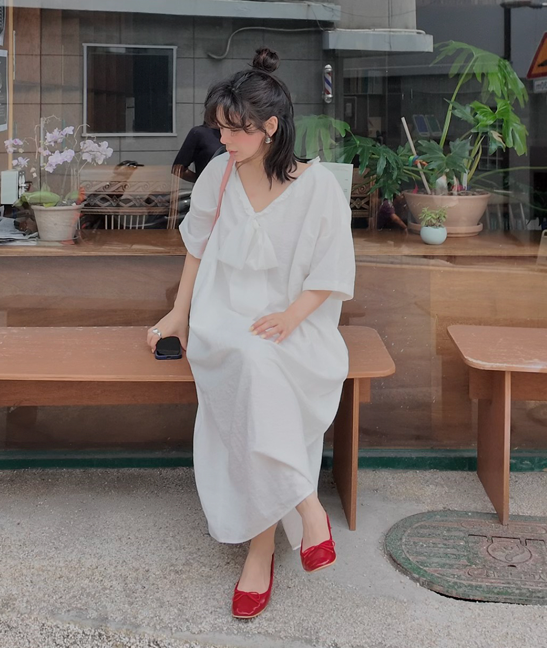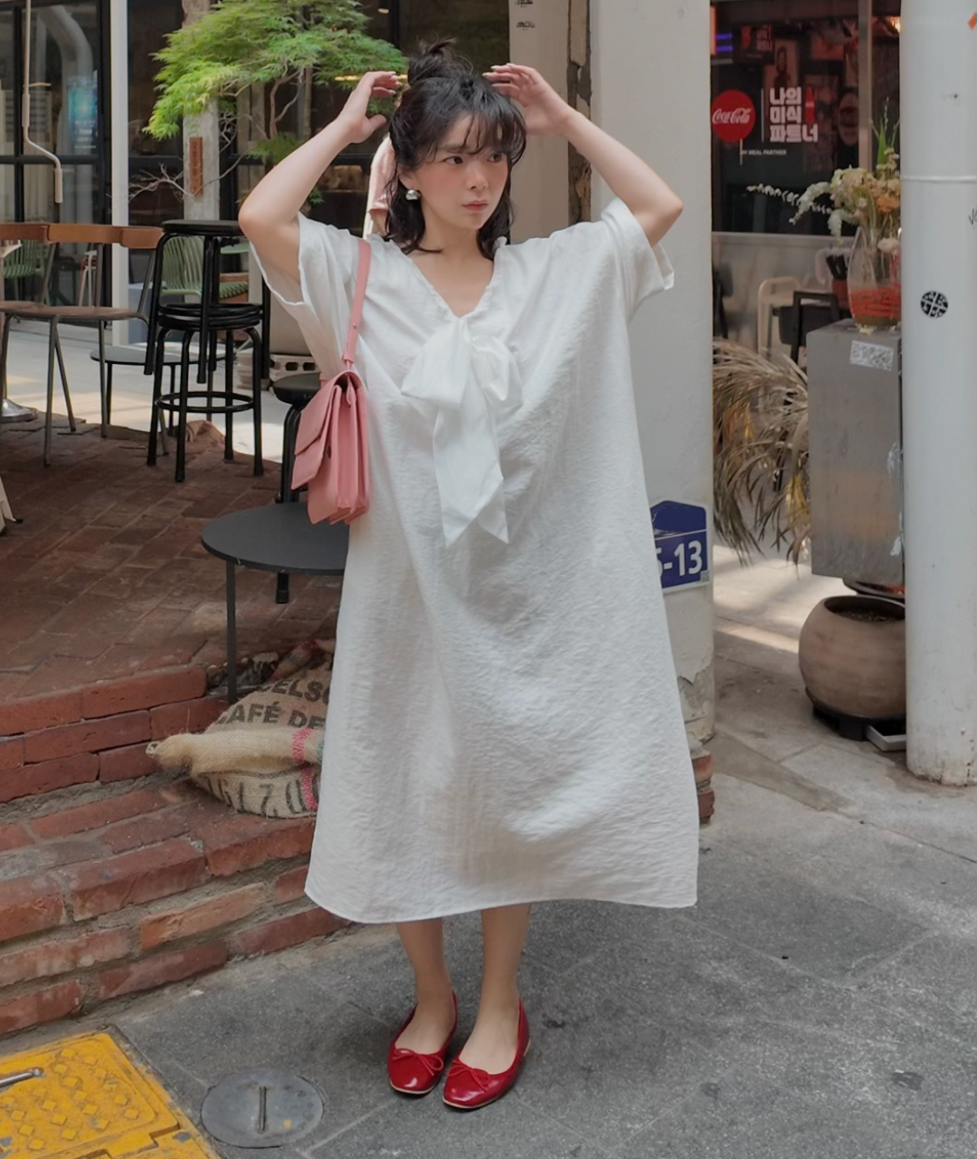 심플한 디자인과 여성스러운 리본 디테일이 어우러진, 여름에 어울리는 원피스를 만나보세요.