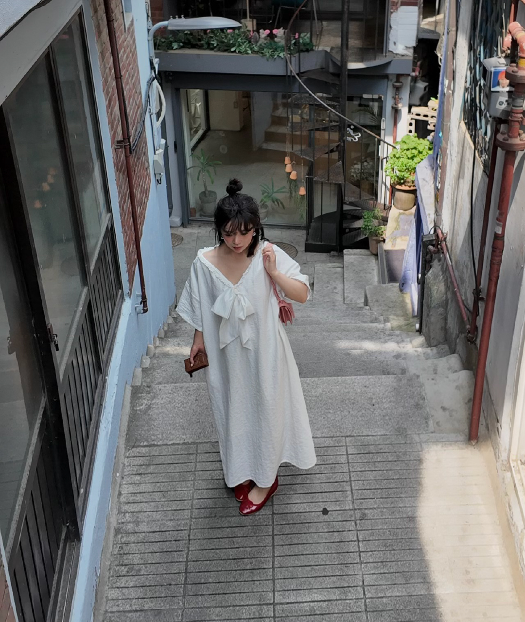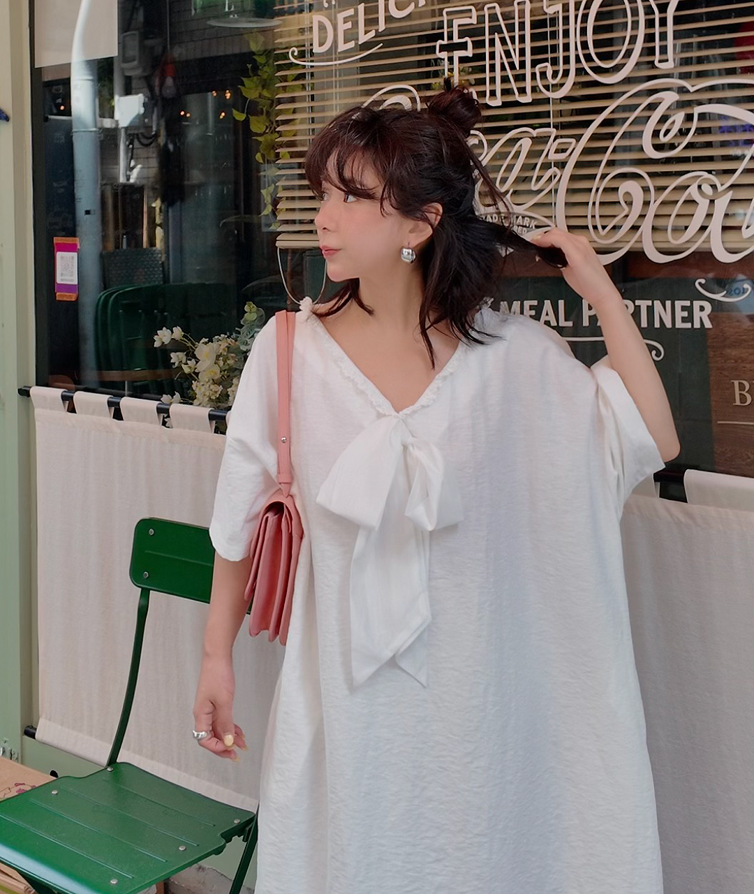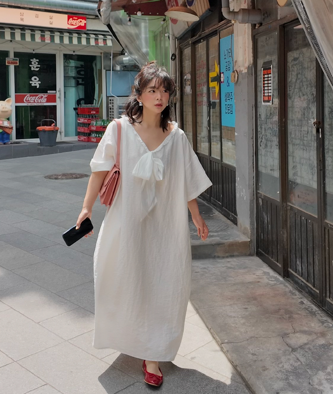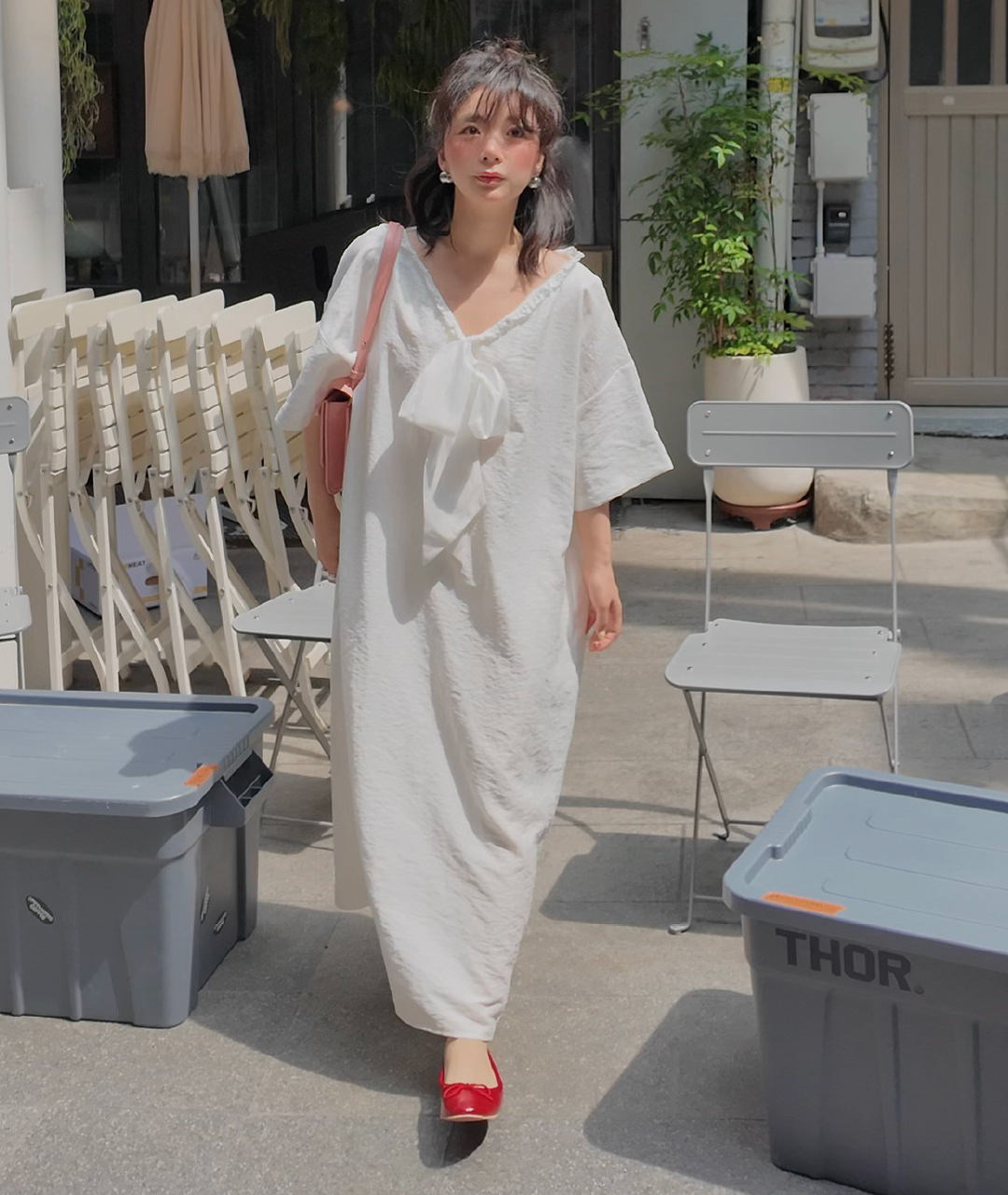 심플한 디자인과 여성스러운 리본 디테일이 어우러진, 여름에 어울리는 원피스를 만나보세요.