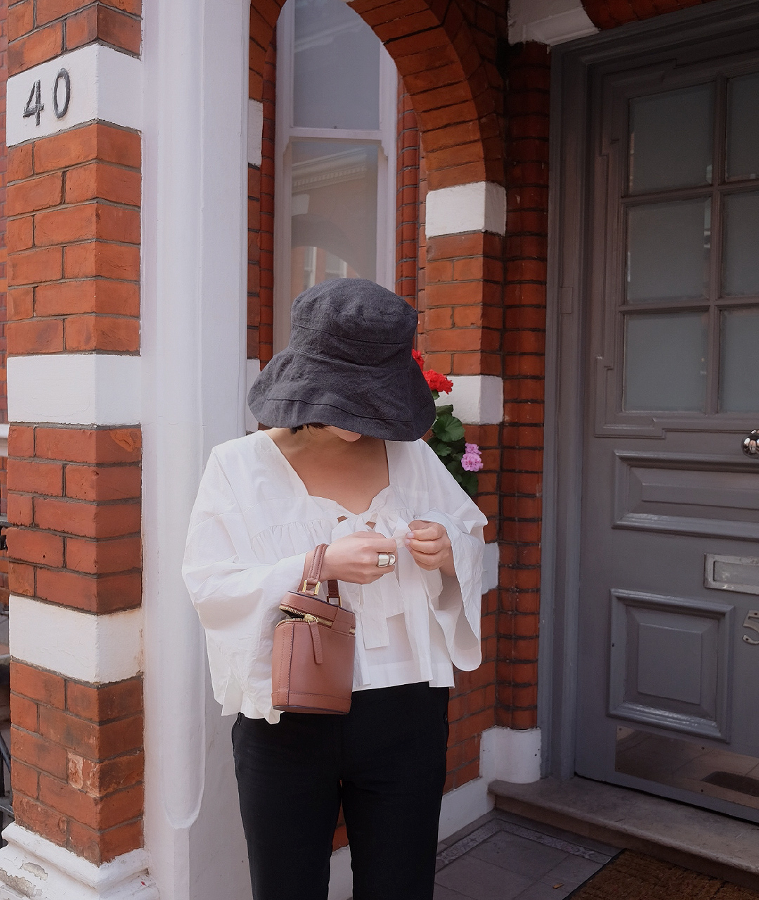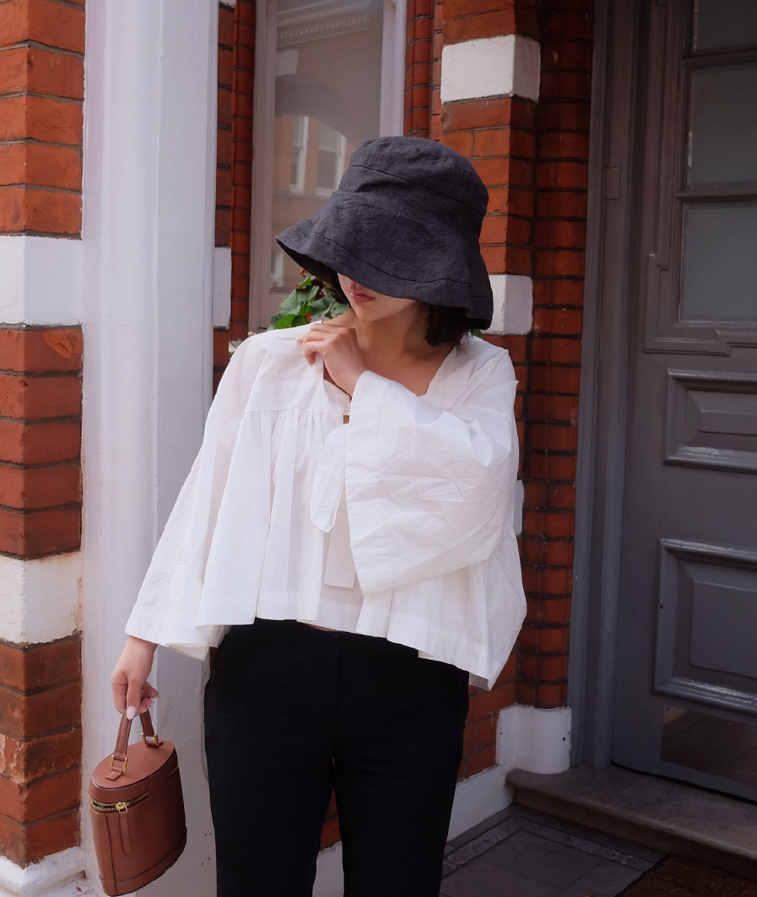 버킷햇의 챙 부분은 넉넉한 너비로 제작되어 햇빛을 효과적으로 차단해주며, 얼굴이 작아 보이는 핏으로 연출할 수 있습니다.
