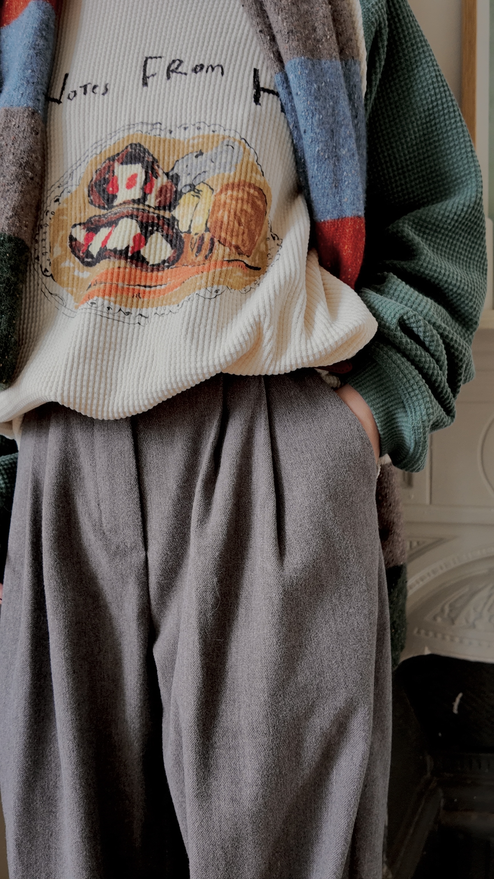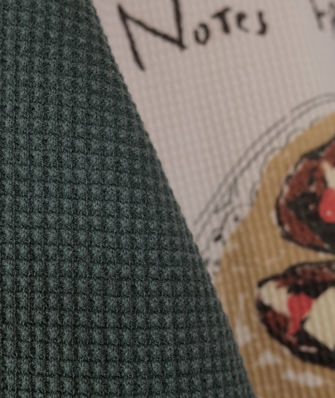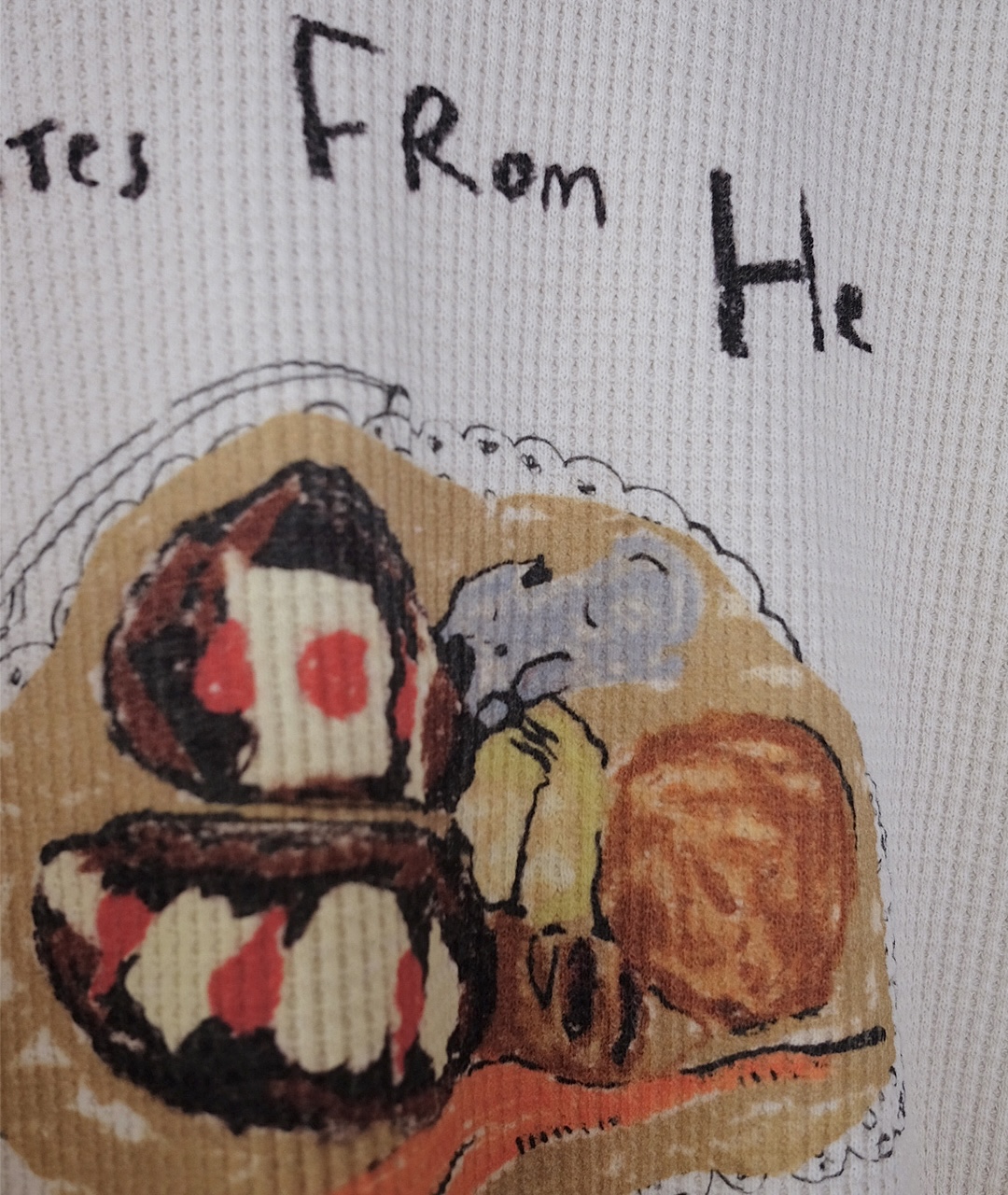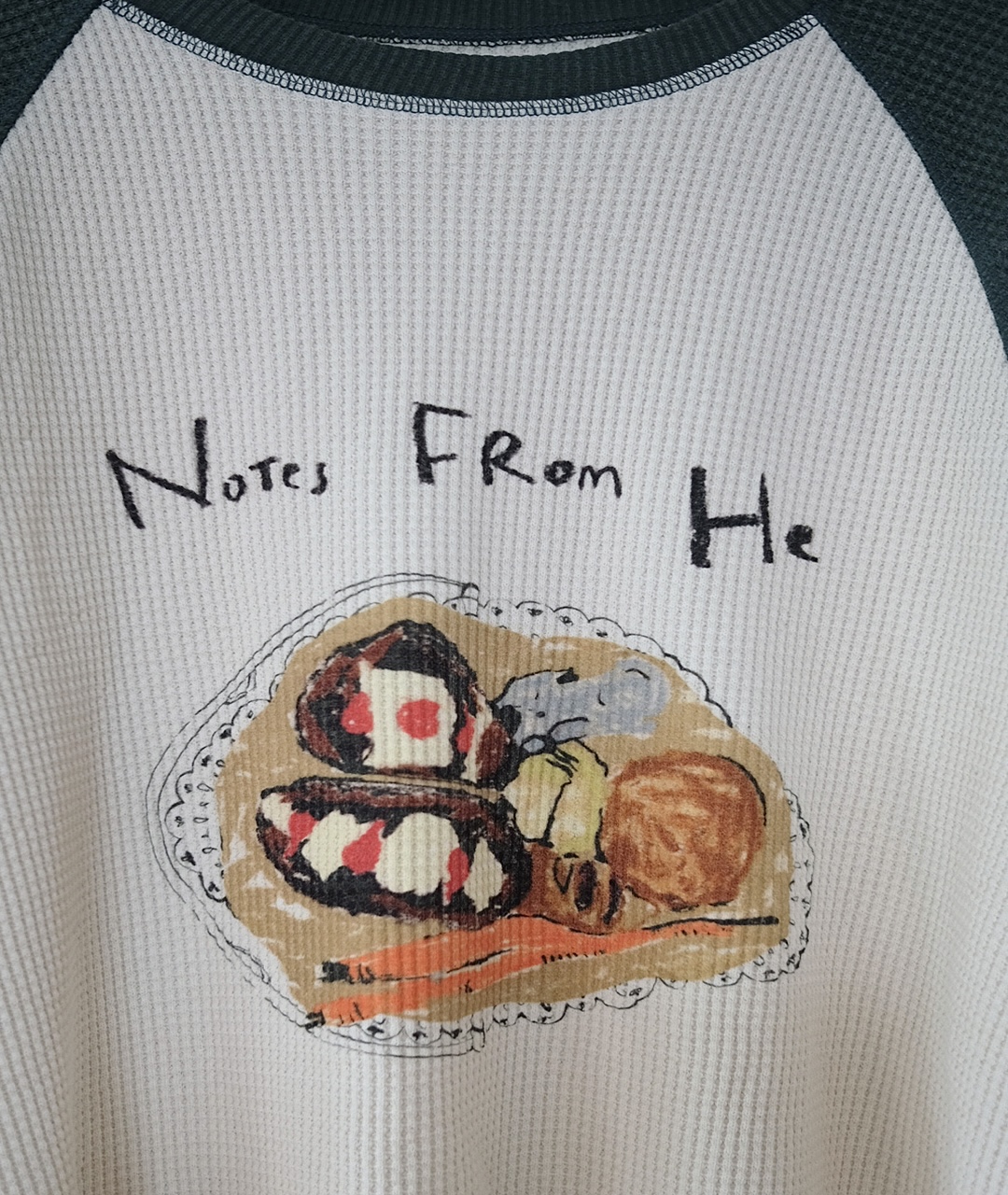 Notes from He의 '간식 플레이팅’ 일러스트가 프린트된 와플 소재의 박시 티셔츠입니다.